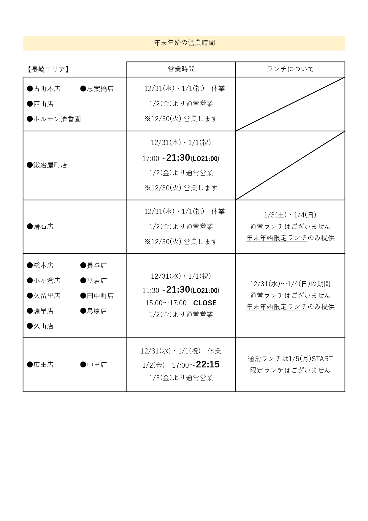 清香園トップページ>ニュース&イベント>年末年始の営業時間などにつきまして【長崎エリア】